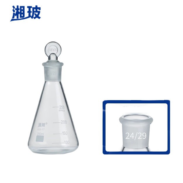 Application: The Erlenmeyer flask with stopper is a commonly used glass container in laboratories, primarily used for holding, mixing, heating, and receiving solutions.